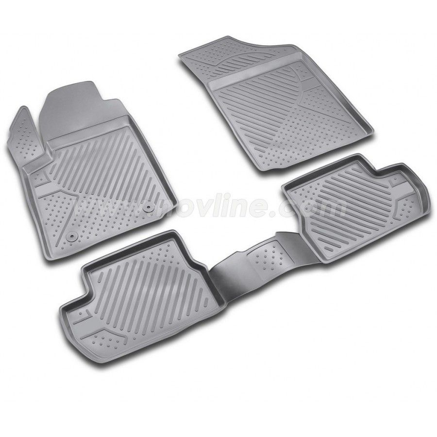 The main function of rubber mats is to protect the car's cabin from dirt and moisture. This is achieved due to the high edges, the crosspiece that protects the driveshaft tunnel in front of the rear seat, the shape, properties of the material, and because of the 3D technology used to shape the mats. This ensures extra protection, keeping the cabin completely clean.