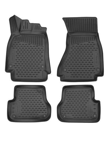 The main function of the mats is to protect the vehicle's interior from dirt and moisture. This is achieved, among other things, by using high edges on the mats. For some car models, there is also a protective piece of mat that covers the drive shaft tunnel in front of the rear seat. Additionally, there is often a piece that protects the rest plate by the pedals. This ensures that the car's floor remains protected.