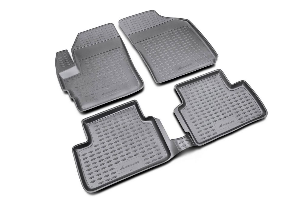 The mats are made of a material with non-slip features. Special fasteners / mat locks are used to secure the mats in the car's interior. The shape of the front part of the driver's mat fits under the accelerator pedal and eliminates the chance of the mats getting stuck in the pedals.