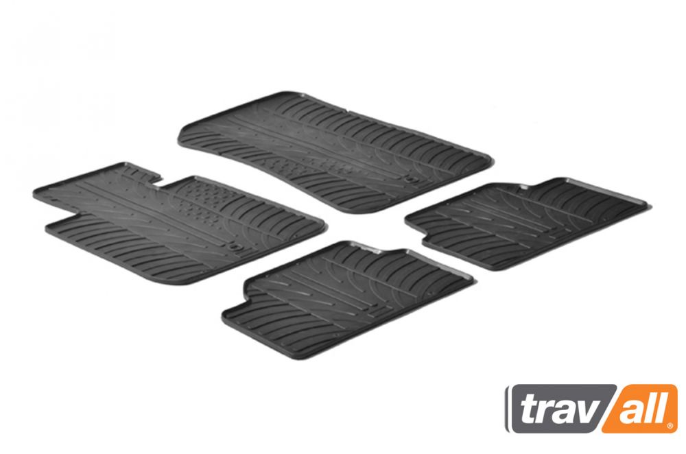 Quality vehicle-specific rubber mats from TravAll with a 1 cm edge, where the front and rear mats are tailored to the specific car model. The mats are made from heavy rubber material to ensure they stay in place and are highly durable, produced in a black color. Genuine rubber ensures optimal non-slip safety. For cars originally equipped with mat locks, the rubber mats are delivered with the original mat locks.