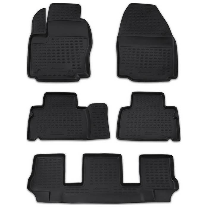 The main function of rubber mats is to protect the car's cabin from dirt and moisture. This is achieved due to the high edges, the crosspiece that protects the drive shaft tunnel in front of the rear seat, the shape, properties of the material, and because of the 3D technology used to shape the mats. This ensures extra protection that keeps the cabin completely clean.