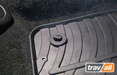 Quality vehicle-specific rubber mats from TravAll with 1 cm edge, where the front and rear mats are tailored to the specific car model. The mats are made from heavy rubber material so they stay in place and are very durable, produced in a black color. Genuine rubber that ensures optimal slip resistance. For cars originally equipped with mat locks, the rubber mats are delivered with the original mat locks.