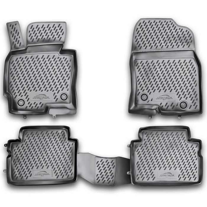 The main function of rubber mats is to protect the car's cabin from dirt and moisture. This is achieved due to the high edges, the crosspiece that protects the drive shaft tunnel in front of the rear seat, the shape, properties of the material, and because of the 3D technology used to design the mats. This ensures extra protection, keeping the cabin completely clean.