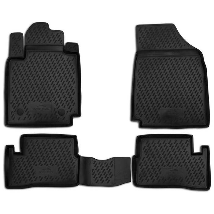 The main function of rubber mats is to protect the car's cabin from dirt and moisture. This is achieved due to the high edges, the crosspiece that protects the cardan tunnel in front of the rear seat, the shape, properties of the material, and because of the 3D technology used to shape the mats. This ensures extra protection, keeping the cabin completely clean.