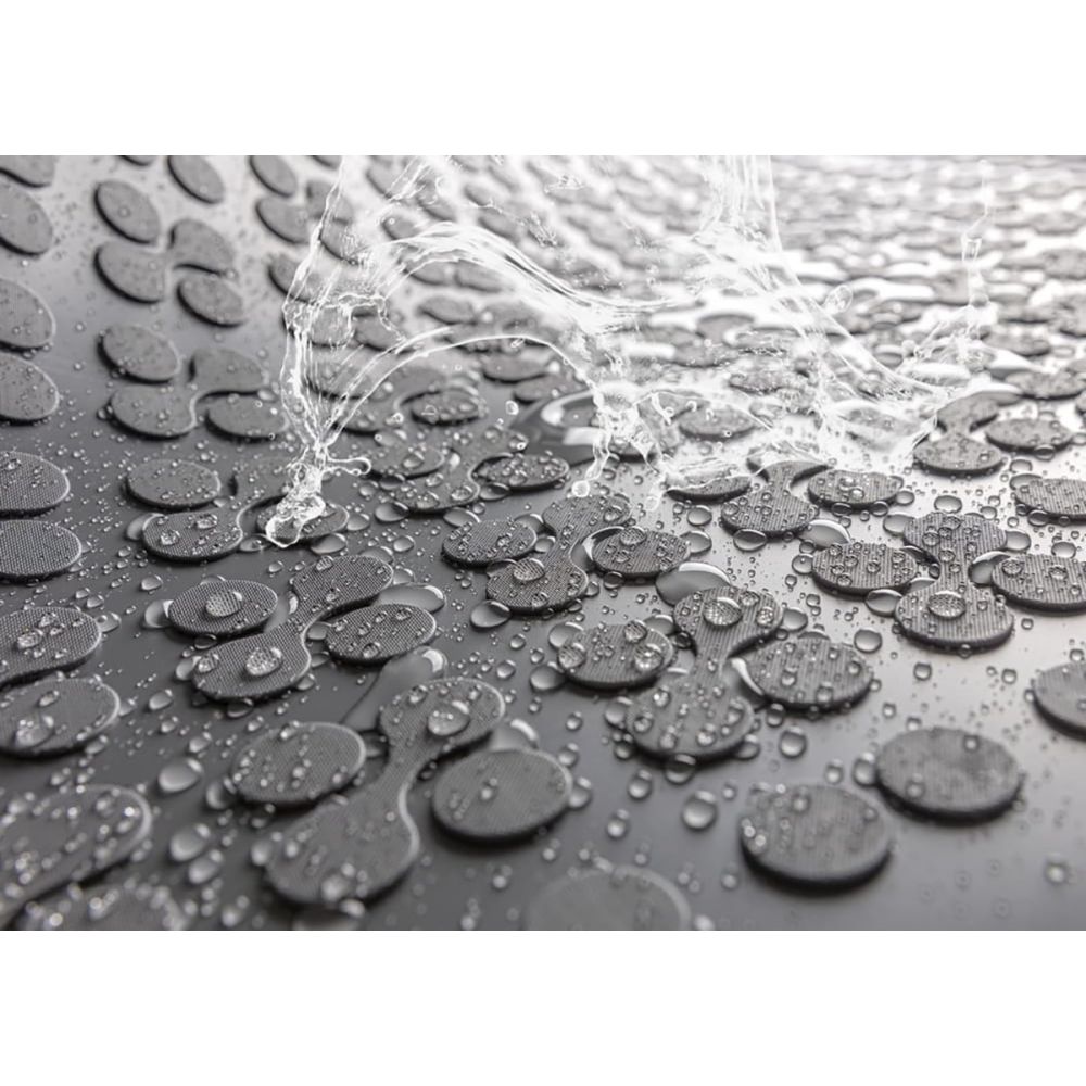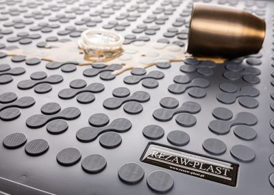 The mats are made of polymer material, making them lightweight (twice as light as rubber). The mats have no unpleasant odor. The specially constructed material composition allows for sufficient rigidity in the mats' raised edges - This prevents water and dirt from spilling over the mat.