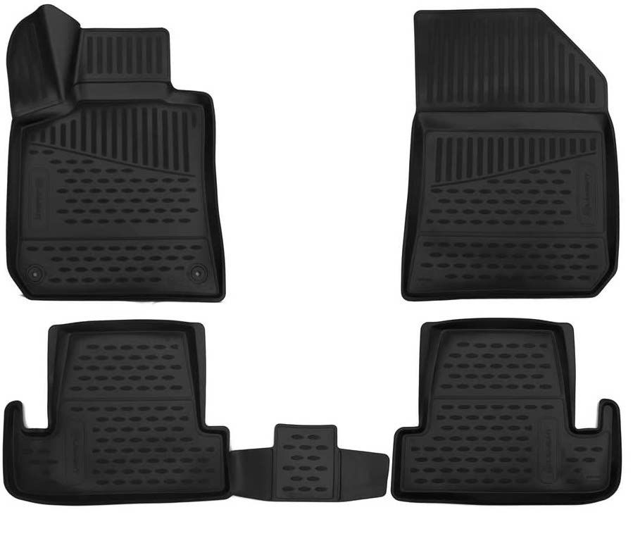 The main function of rubber mats is to protect the car's cabin from dirt and moisture. This is achieved due to the high edges, the crosspiece that protects the drive shaft tunnel in front of the rear seat, the shape, properties of the material, and because of the 3D technology used to shape the mats. This ensures extra protection, keeping the cabin completely clean.