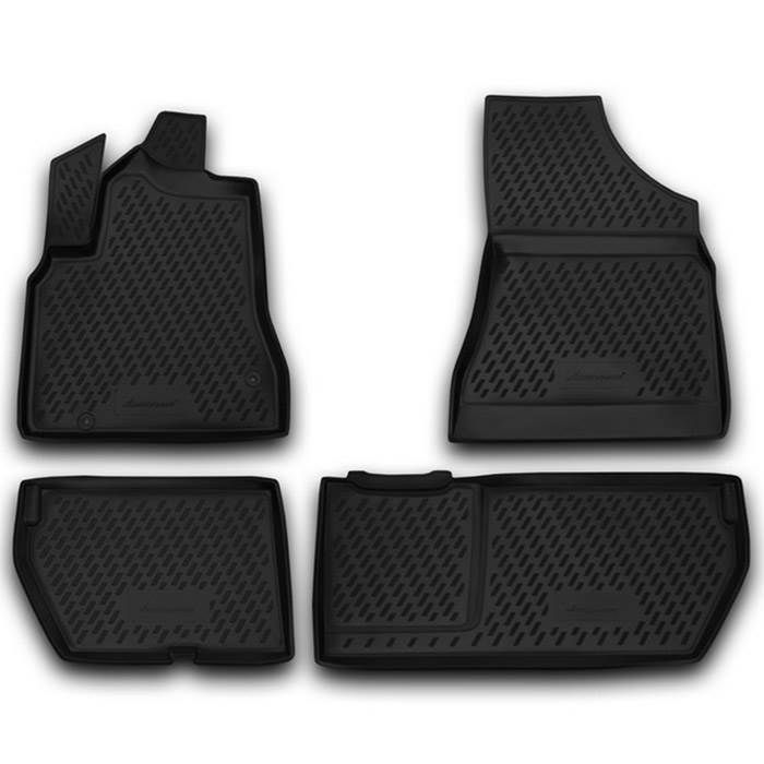 The main function of rubber mats is to protect the car's cabin from dirt and moisture. This is achieved due to the high edges, the crosspiece that protects the cardan tunnel in front of the rear seat, the shape, properties of the material, and because of the 3D technology used to shape the mats. This ensures extra protection, keeping the cabin completely clean.