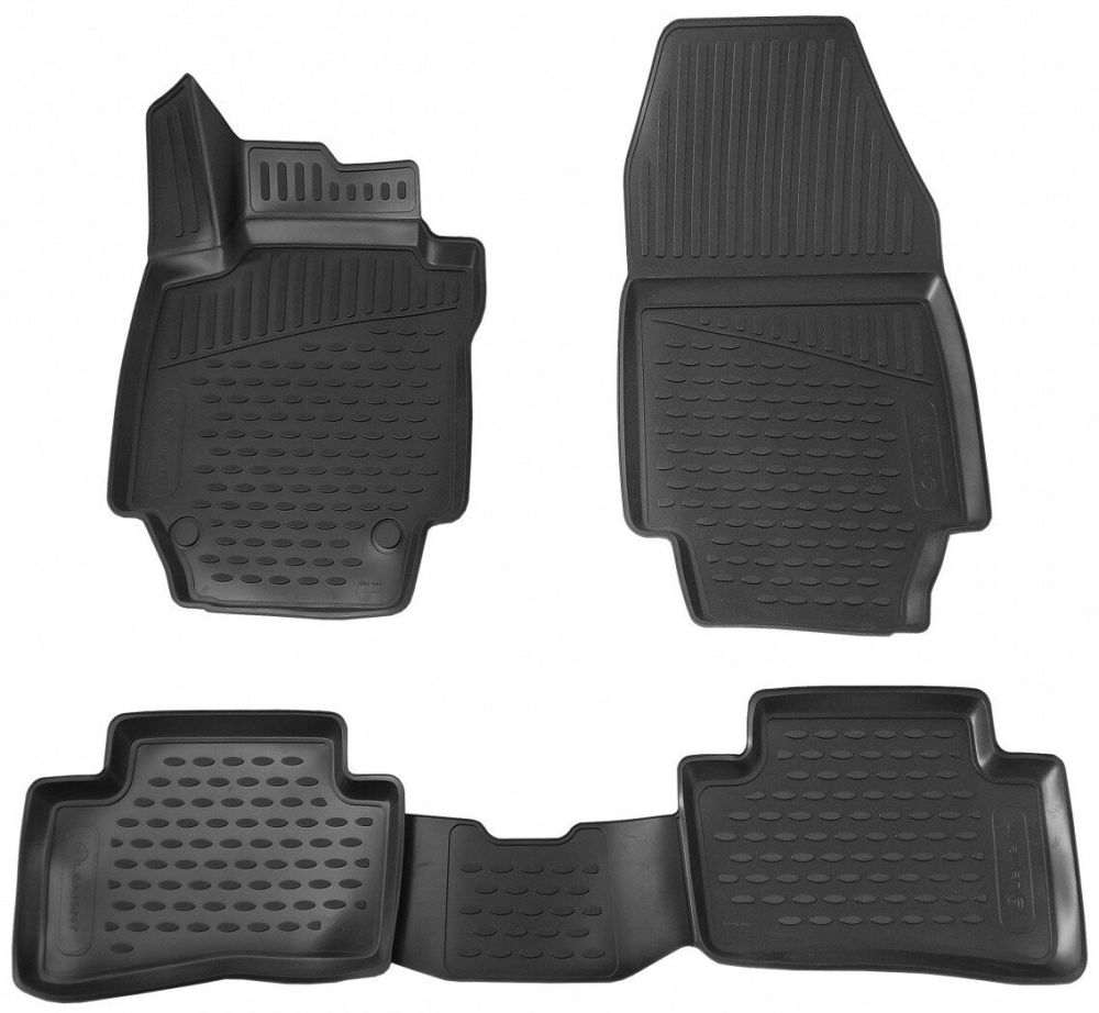 The main function of rubber mats is to protect the car's cabin from dirt and moisture. This is achieved due to the high edges, the crosspiece that protects the cardan tunnel in front of the rear seat, the shape, properties of the material, and because of the 3D technology used to shape the mats. This ensures extra protection, keeping the cabin completely clean.