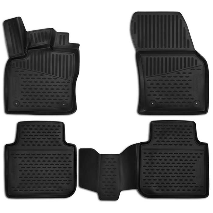 The main function of the mats is to protect the vehicle's interior from dirt and moisture. This is achieved, among other things, by using high edges on the mats. For some car models, there is also a protective piece of mat that covers the drive shaft tunnel in front of the rear seat. Additionally, there is often a piece that protects the footrest at the pedals. This ensures that the car's floor remains protected.