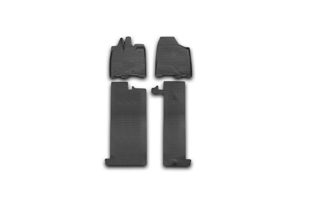 The main function of rubber mats is to protect the car's cabin from dirt and moisture. This is achieved due to the high edges, the crosspiece that protects the cardan tunnel in front of the rear seat, the shape, properties of the material, and because of the 3D technology used to design the mats. This ensures extra protection that keeps the cabin completely clean.