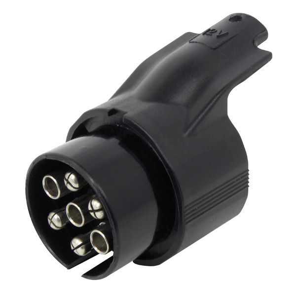 CarPoint trailer plug. Adapter that converts 7 pin plug to 13 pin. If your new caravan has a 13-pin plug, you can connect this adapter to your 7-pin towbar, so you don't have to change the socket and wiring.