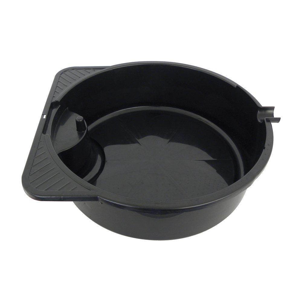 Practical oil drip tray for use during oil changes. Equipped with a spout, making it easy to pour oil into another container,
