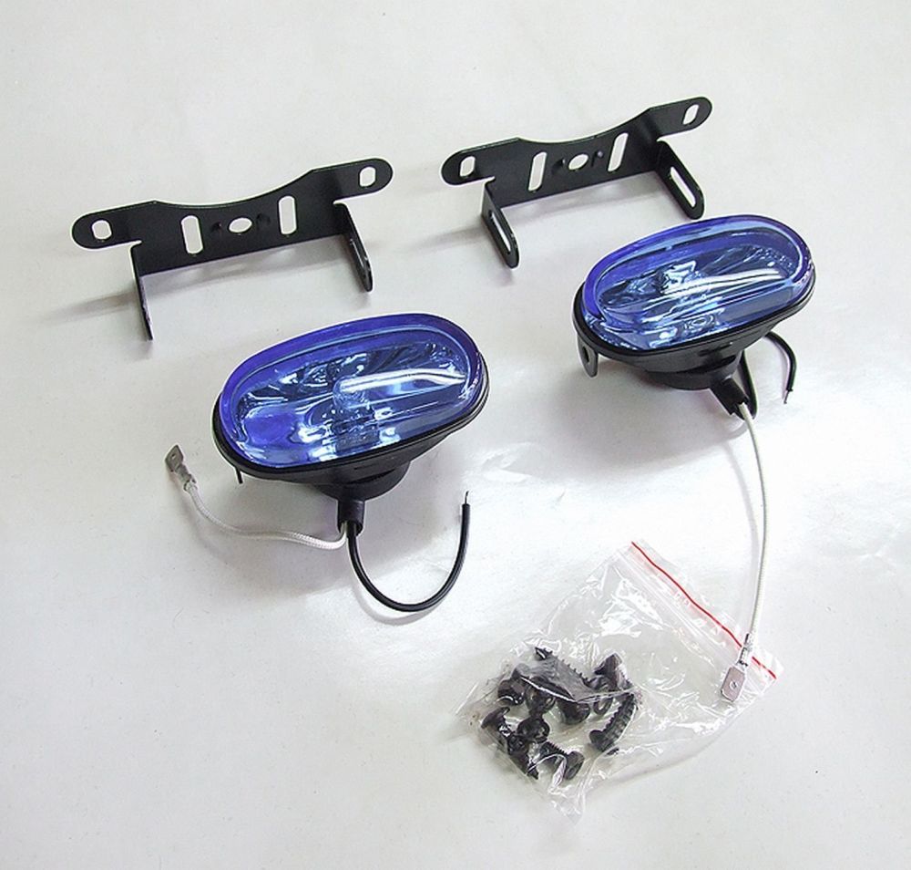 COMPACT LAMP, universal Fog Light Set in blue, suitable for most cars and provides excellent lighting. Super smart mini DLAA light set, uses H3 halogen bulb 12V 55W - (Bulb included). The set also comes with mounting brackets and screws.