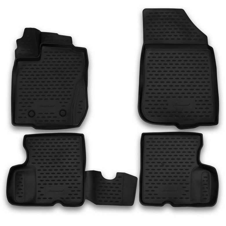 The main function of rubber mats is to protect the car's cabin from dirt and moisture. This is achieved due to the high edges, the crosspiece that protects the cardan tunnel in front of the back seat, the shape, properties of the material, and because of the 3D technology used to design the mats. This ensures extra protection, keeping the cabin completely clean.