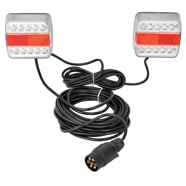 This magnetic lighting set is easy to install and remove, suitable for short or long-term use on the caravan, trailer, or trailer. The set includes brake lights, taillights, and indicators. The 7-pin plug is directly connected and has a cable length of 7.5 meters.