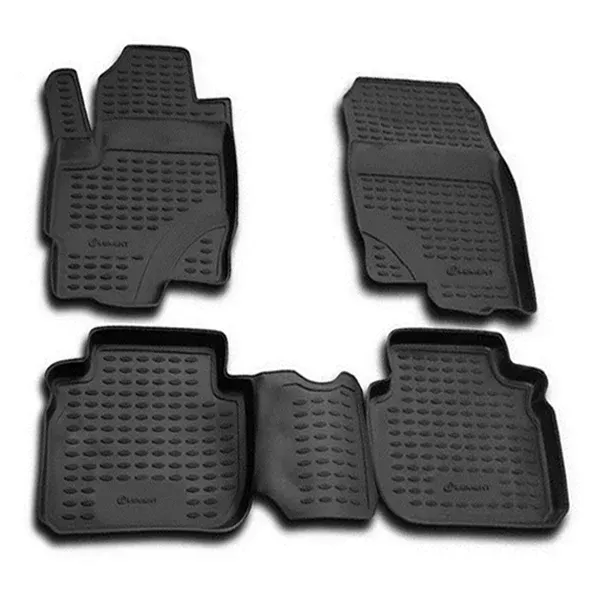 The main function of rubber mats is to protect the car's cabin from dirt and moisture. This is achieved due to the high edges, the crosspiece that protects the cardan tunnel in front of the rear seat, the shape, properties of the material, and because of the 3D technology used to design the mats. This ensures extra protection, keeping the cabin completely clean.