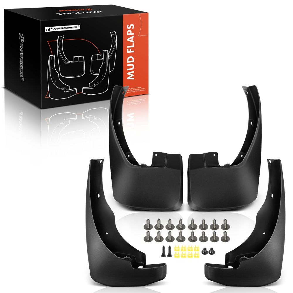 The mud flaps protect your car's paint from stones and gravel from the road. The mud flaps are made of a high-quality black rubber material, making them resistant to temperature changes and able to withstand any chemical substances from the road. The vehicle-specific mud flaps come in a pack of 4 and fit the car models listed below. Delivered with screws and various brackets.
