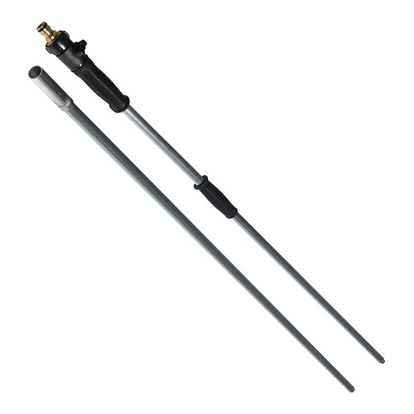 Super smart universal telescopic handle to reach difficult heights. This telescopic handle can be extended between 150-300 cm. The telescopic handle is ideal for washing brushes with water flow. The handle consists of 2 parts, to use both parts you simply screw it together, without the use of tools. It has a practical on/off button, so you can easily control the water supply. The telescopic handle has a rubber grip, making it non-slip and providing a better working grip. The handle fits most water hoses at home or at work.
