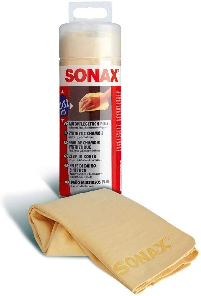 Sonax synthetic chamois is a premium quality product with long-lasting durability and excellent properties. It is designed with a special structure that mimics the characteristics of genuine natural chamois both in absorbency and gentleness on surfaces. When the chamois dries out, it becomes stiff, but it quickly becomes soft and flexible again as soon as it comes into contact with water.