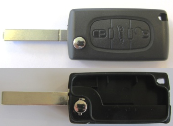 Citrôen 3 button remote housing / transmitter housing for model key with flat key blade. Without battery holder.