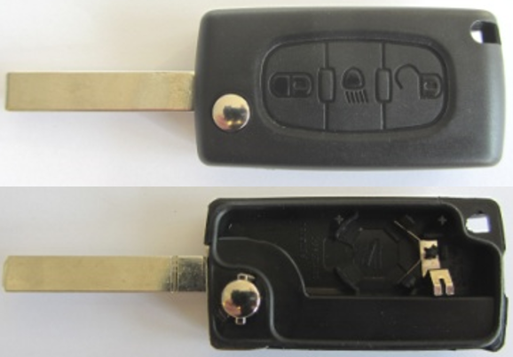 Citrôen 3 button remote housing / transmitter housing for model key with flat key blade. Includes battery holder. (Light button in the middle)