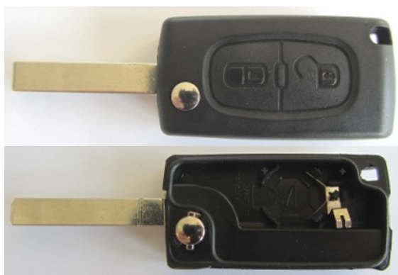 Peugeot 2 button remote housing / transmitter housing for model key with flat key blade.