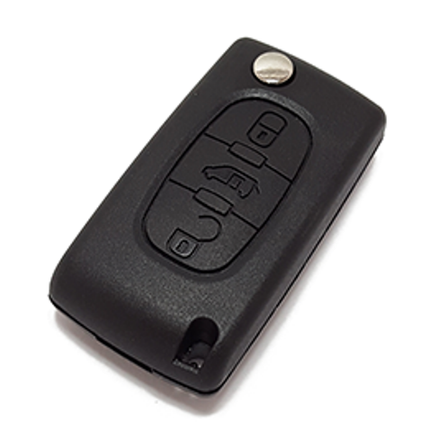 Peugeot 3 button remote control housing/transmitter housing. Delivered with a battery holder, which is located inside the case. Key tip, electronic board, and immobilizer transponder are transferred to the new remote control housing.