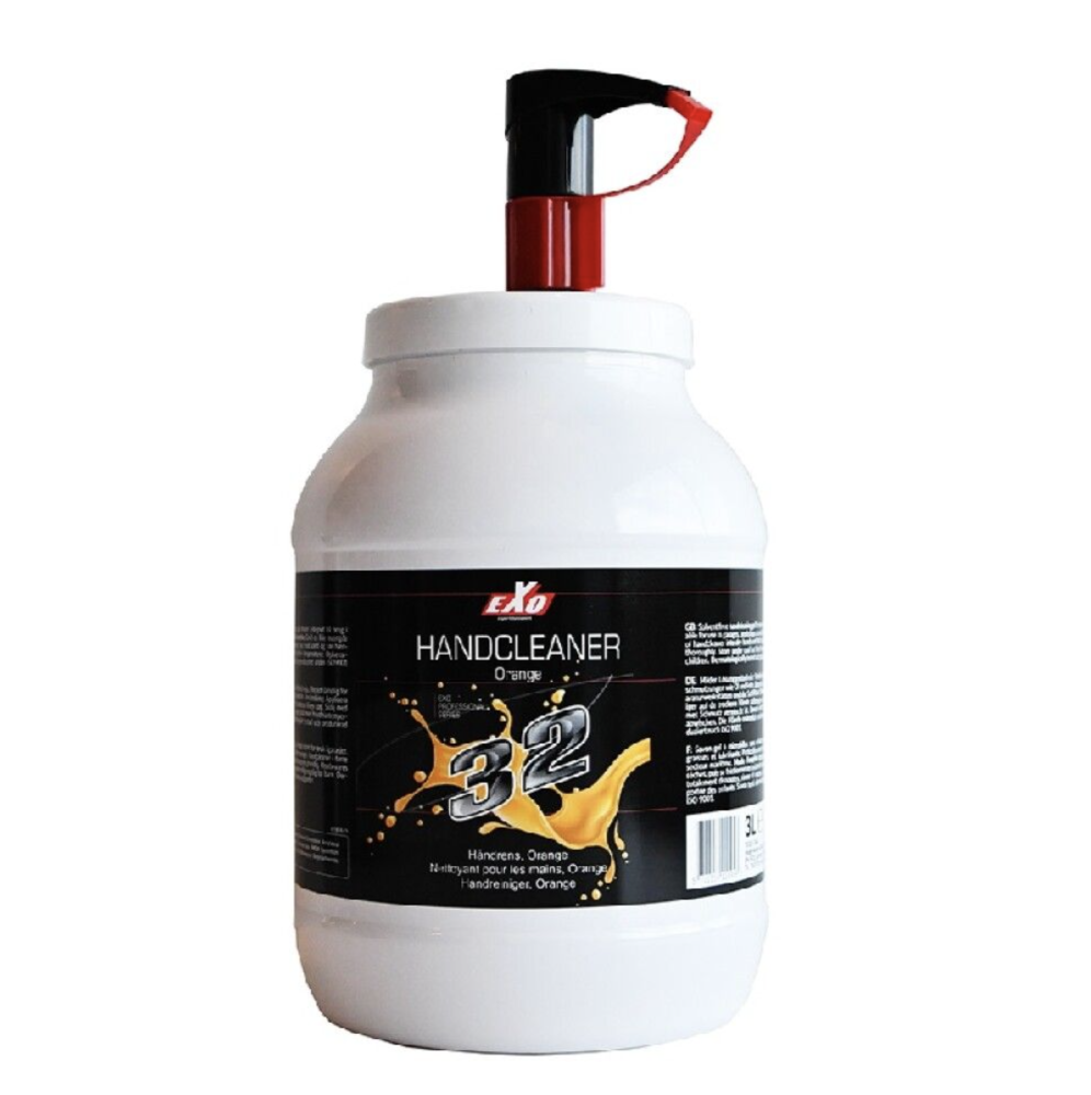 EXO 32 Hand Cleaner Orange is a powerful, professional hand cleaner with pump designed to effectively remove oil, grease, greas, dirt and other tough contaminants from hands – perfect for workshops, industry and mechanical environments. This large 3-litre pump container ensures you have plenty of hand cleaner for long-term use, making the product both economical and practical for day-to-day operations. The hand cleaner is gritty, helping to loosen and dissolve stubborn dirt quickly and effectively without drying out the skin. It is developed to be gentle on the skin, while still working hard against stubborn grime.