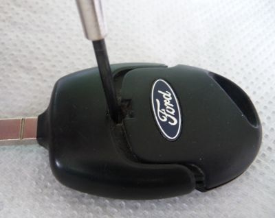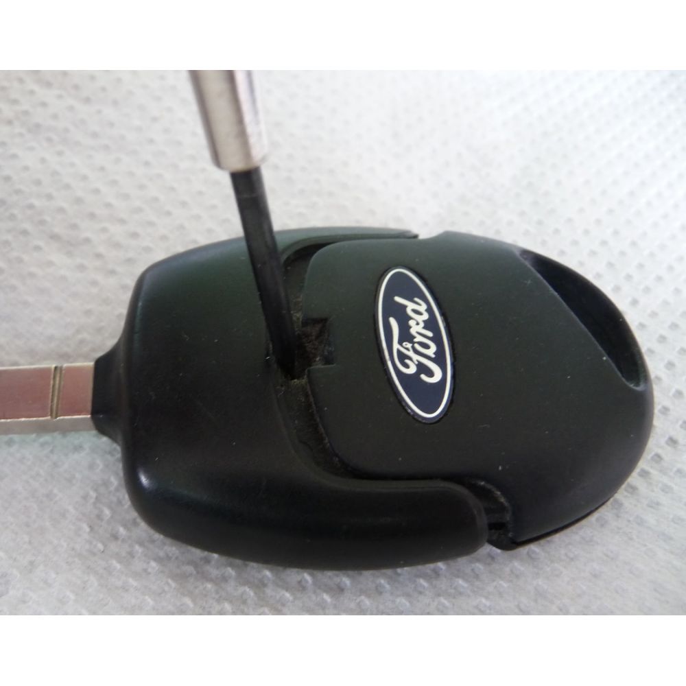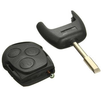 Ford 3 button black remote housing / transmitter housing. Incl. battery holder. Delivered without electronics and circuit board. Key blade, circuit board, and immobilizer transponder are transferred to the new remote housing. Ford logo included. NOTE - this is a loose cover that fits your original car key, but only if your key matches the one in the picture.