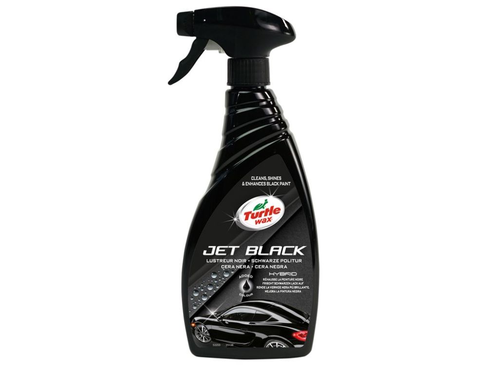 Turtle Wax Hybrid Jet Black Spray Polish is the fastest way to achieve a flawless black finish. The color-enriched formula quickly removes imperfections while the synthetic polymers form a strong bond to the clear coat for maximum protection. The user-friendly formula helps maintain a new shine in all weather conditions. Turtle Wax Hybrid Jet Black Spray Polish contains polishes, natural carnauba wax, and functional protectants that bond to the car's paint surface for long-lasting protection. For best results, use on cool surfaces and out of direct sunlight.