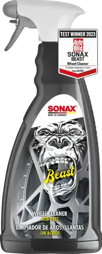 Sonax FelgenBeast leaves no dirt behind on all steel and alloy wheels, painted, chrome-plated, polished, and matte wheels. This means that this wheel cleaner can be used on all types of wheels and removes almost all types of dirt.