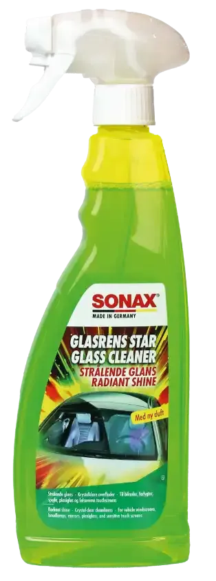 Powerful cleaning agent for car windows, headlights, and mirror surfaces with a fruity and trendy scent. Effectively works against insects, oil, silicone, and exhaust residues outdoors, and indoors it quickly and easily removes all stubborn dirt, nicotine residues, and grease films. It is also suitable for touch screens or for cleaning mirrors and windows in the home.