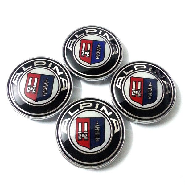 Alpina center caps with black background. Complete center cap that fits most wheels, the caps are mounted from the front of the wheel and simply click in, easy to install. Size 55/60 mm. packed with 4 pcs.