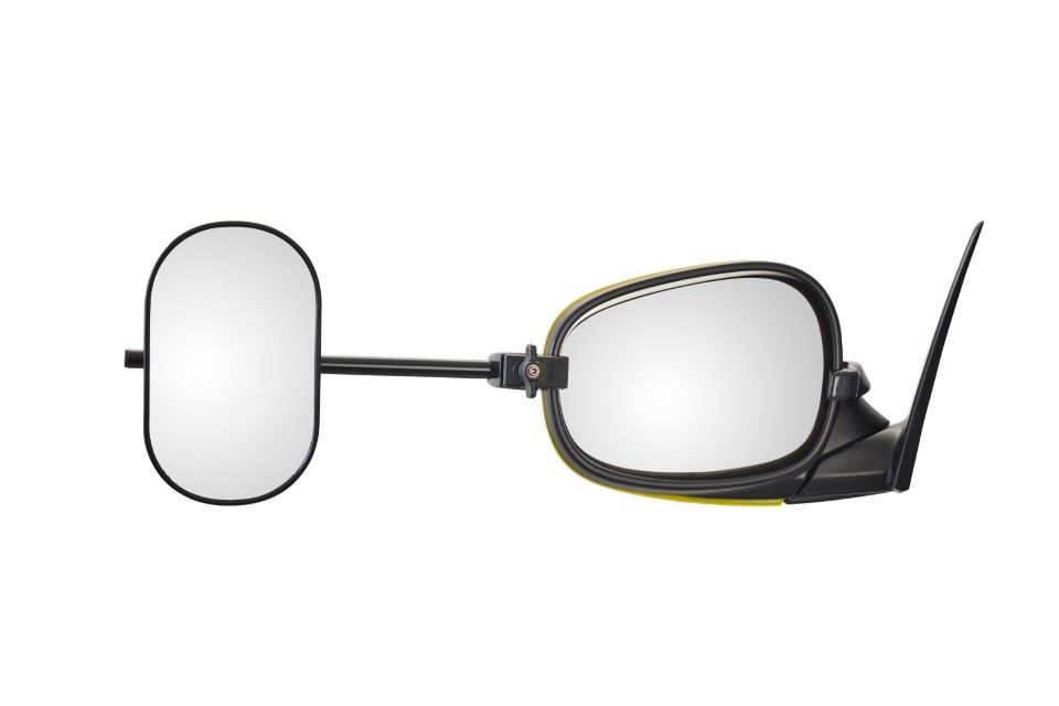 Quality caravan mirrors from German EMUK. Vehicle-specific UV-resistant towing mirrors delivered in sets, this unique mirror set is molded for each individual car model. The bracket itself is made of vibration-damping cast aluminum, providing a perfect fit. The mirror head is aerodynamic with a large field of view, and the glass itself is convex, with a wide-angle radius of 450 mm. Quick installation without the use of tools. It is possible to see a product video at the bottom of the description, although the video is only available in German.