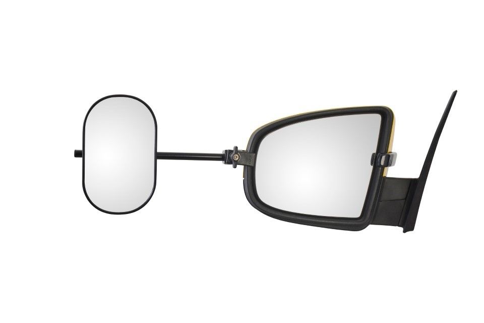 Quality caravan mirrors from German EMUK. Vehicle-specific UV-resistant towing mirrors supplied in sets, this unique mirror set is molded for each individual car model. The bracket itself is made of vibration-damping cast aluminum, providing a perfect fit. The mirror head is aerodynamic with a large field of view, and the glass itself is convex, with a wide-angle radius of 450 mm. Quick installation without the use of tools. It is possible to see a product video at the bottom of the description, although the video is only available in German.