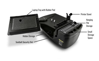 Mobil office 30 cm arm - AutoExec Reach Desk Front Seat - Black table