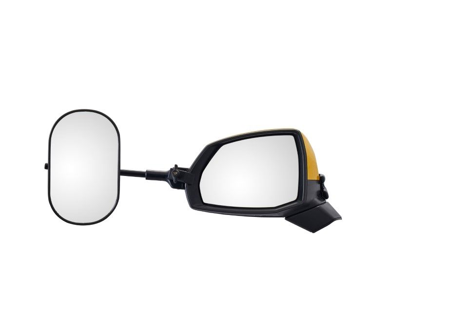 Quality caravan mirrors from German EMUK. Vehicle-specific UV-resistant towing mirrors delivered in sets, this unique mirror set is molded for each individual car model. The bracket itself is made of vibration-damping cast aluminum, providing a perfect fit. The mirror head is aerodynamic with a large field of view, and the glass itself is convex, with a wide-angle radius of 450 mm. Quick installation without the use of tools. It is possible to see a product video at the bottom of the description, however, the video is only available in German.