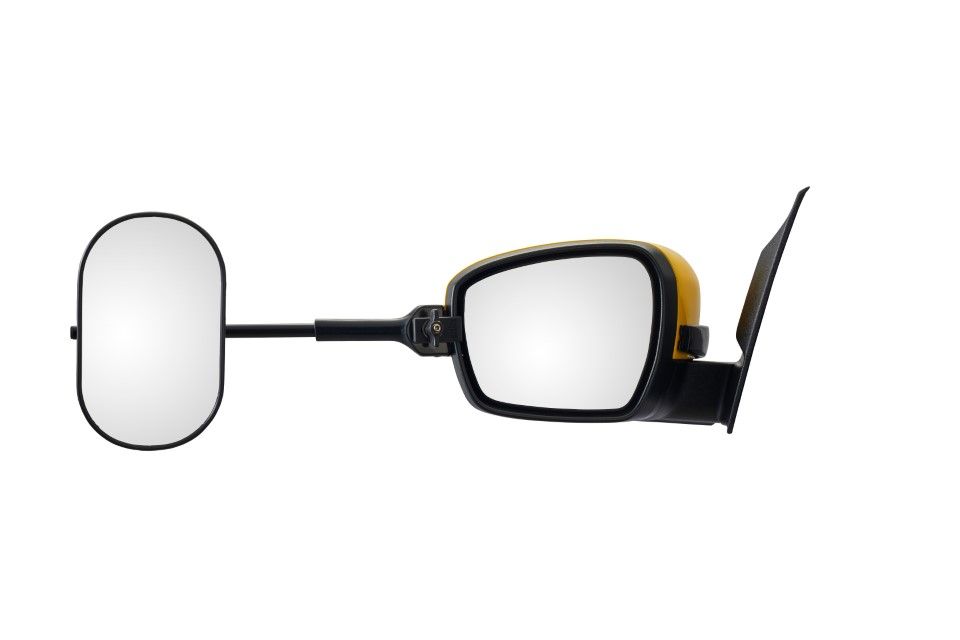 Quality caravan mirrors from German EMUK. Vehicle-specific UV-resistant towing mirrors supplied in sets, this unique mirror set is molded for each individual car model. The bracket itself is made of vibration-damping cast aluminum, providing a perfect fit. The mirror head is aerodynamic with a large field of view, and the glass itself is convex, with a wide-angle radius of 450 mm. Quick installation without the use of tools. It is possible to see a product video at the bottom of the description, although the video is only available in German.
