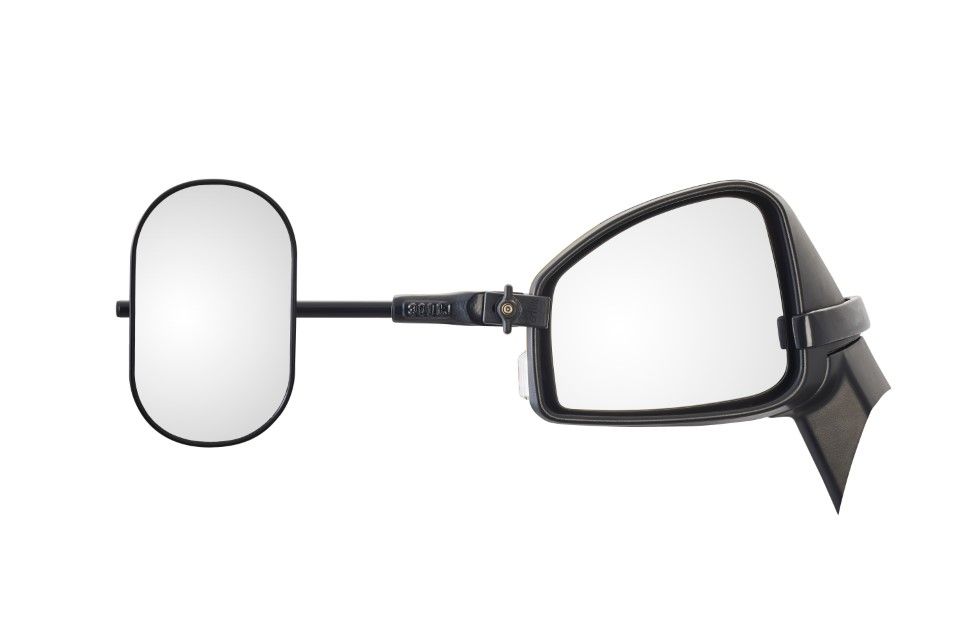 Quality caravan mirrors from German EMUK. Vehicle-specific UV-resistant towing mirrors delivered in sets, this unique mirror set is molded for each individual car model. The bracket itself is made of vibration-damping cast aluminum, providing a perfect fit. The mirror head is aerodynamic with a large field of view, and the glass itself is convex, with a wide-angle radius of 450 mm. Quick installation without the use of tools. It is possible to see a product video at the bottom of the description, however, the video is only available in German.