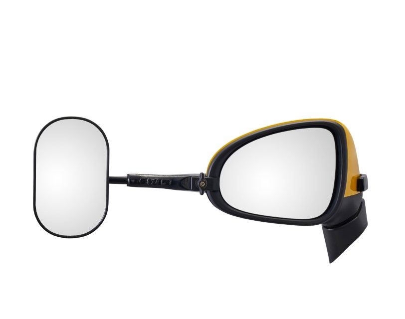 Quality caravan mirrors from German EMUK. Vehicle-specific UV-resistant towing mirrors supplied in sets, this unique mirror set is molded for each individual car model. The bracket itself is made of vibration-damping cast aluminum, providing a perfect fit. The mirror head is aerodynamic with a large field of view, and the glass itself is convex, with a wide-angle radius of 450 mm. Quick installation without the use of tools. It is possible to see a product video at the bottom of the description, although the video is only available in German.