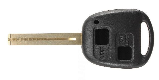 Toyota 2 button remote control housing/transmitter housing. Delivered with fixed key blade. Key blade, electronic board, and immobilizer transponder are transferred to the new remote control housing.