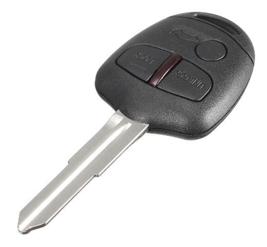 Mitsubishi 3 button remote control housing/transmitter housing. The electronic board and immobilizer transponder are transferred to the new remote control housing. Blade must be cut according to the old key.