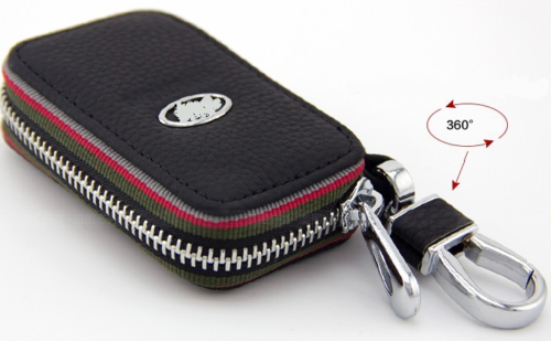 Smart keychain with wallet in black genuine leather and with zipper for storing small items, in a stylish design with BMW logo.