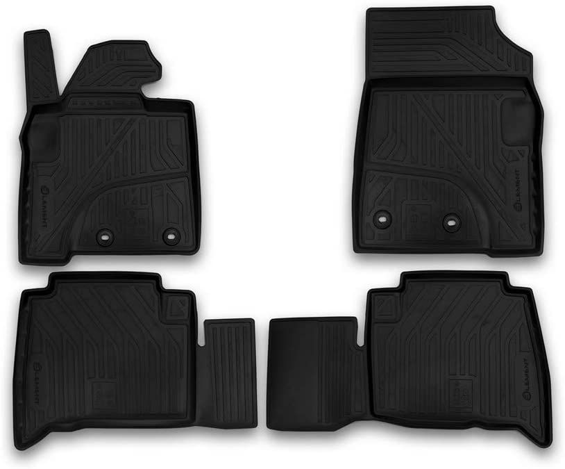 The main function of rubber mats is to protect the car's cabin from dirt and moisture. This is achieved due to the high edges, the crosspiece that protects the drive shaft tunnel in front of the rear seat, the shape, properties of the material, and because of the 3D technology used to design the mats. This ensures extra protection that keeps the cabin completely clean.