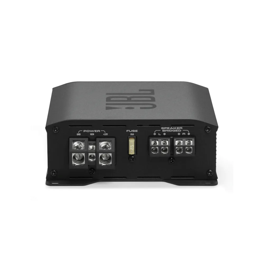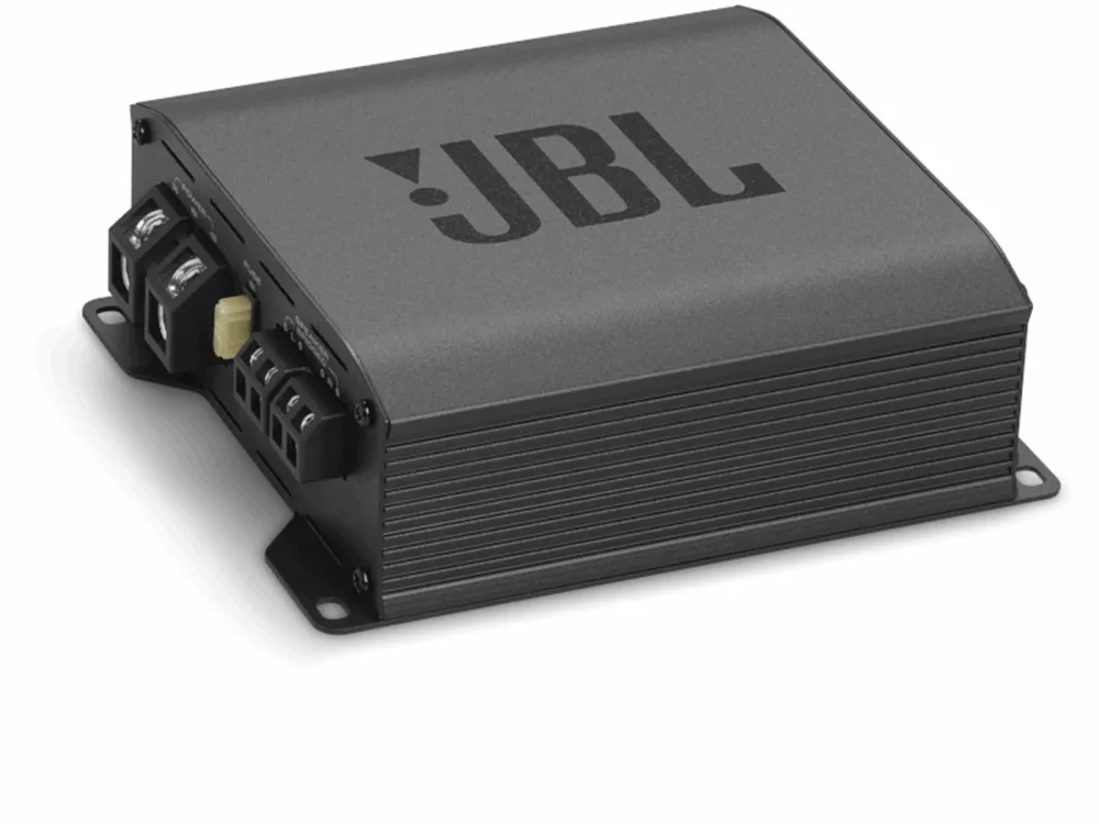JBL Stage GT80021 is a compact 2-channel Class D car amplifier, designed to deliver powerful sound with minimal space consumption. It can be used in a stereo setup or bridged to power a subwoofer, providing flexibility for both regular speakers and bass units. The amplifier features adjustable bass-EQ, high- and low-pass filters, as well as comprehensive protection against overload, short circuit, and incorrect voltage. It is well-suited for cars where space is limited, but where sound quality still needs to be high.