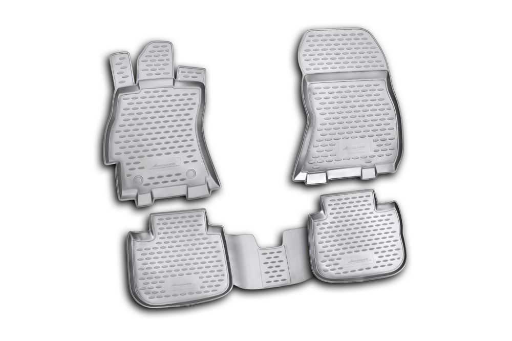 The main function of rubber mats is to protect the car's cabin from dirt and moisture. This is achieved due to the high edges, the crosspiece that protects the drive shaft tunnel in front of the rear seat, the shape, properties of the material, and because of the 3D technology used to shape the mats. This ensures extra protection, keeping the cabin completely clean.