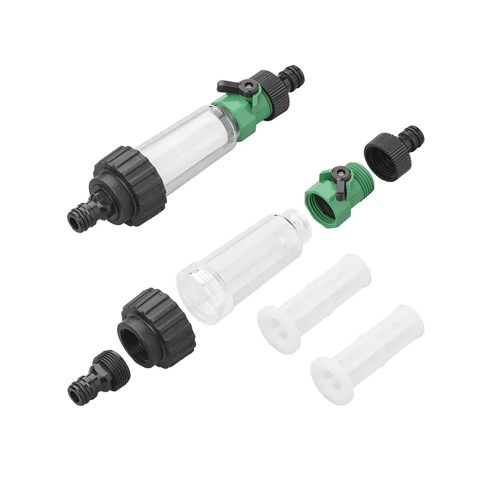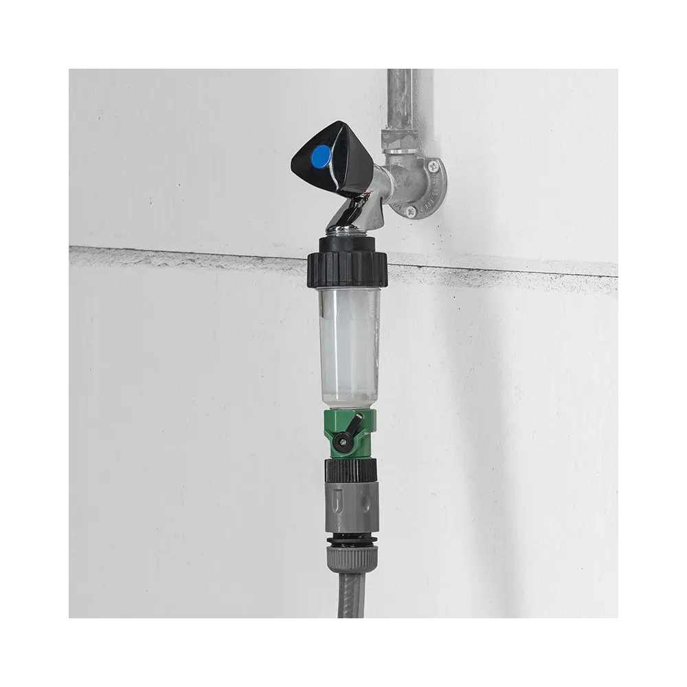 The transparent filter housing makes it easy to check the filter's condition, and the filter can be easily disassembled and cleaned without the use of tools. An integrated stop and control valve provides precise control over water quantity and flow. The filter comes complete with an extra filter insert, so you always have a spare on hand.