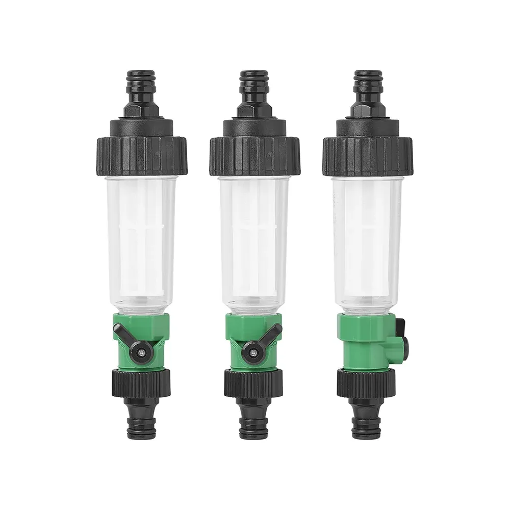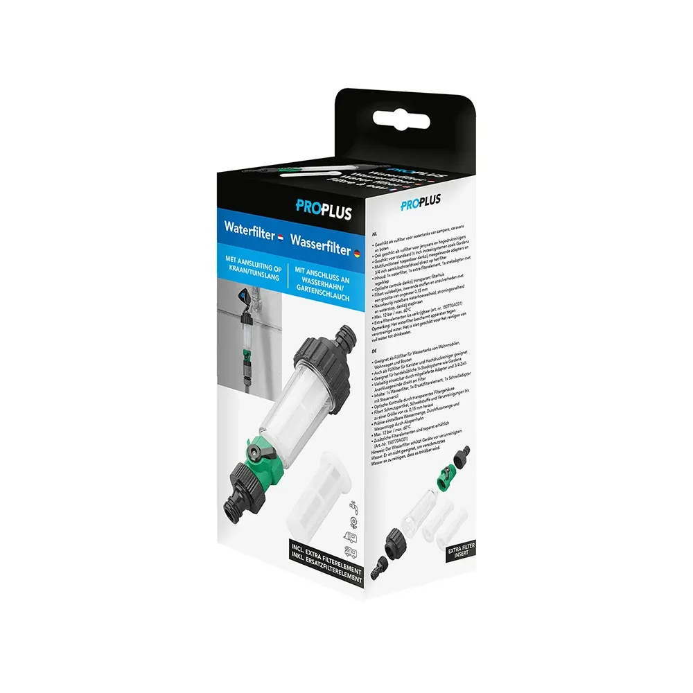 This water filter is ideal for filling water tanks in motorhomes, caravans, and boats, effectively protecting your water system from dirt and impurities. The filter is mounted directly on the water hose and ensures clean water during filling, protecting pumps, pipes, and tanks. The filter fits standard œ" click systems such as Gardena and can also be used for jerry cans and pressure washers. Thanks to the included adapters and Ÿ" thread directly on the filter, it is very flexible in use.