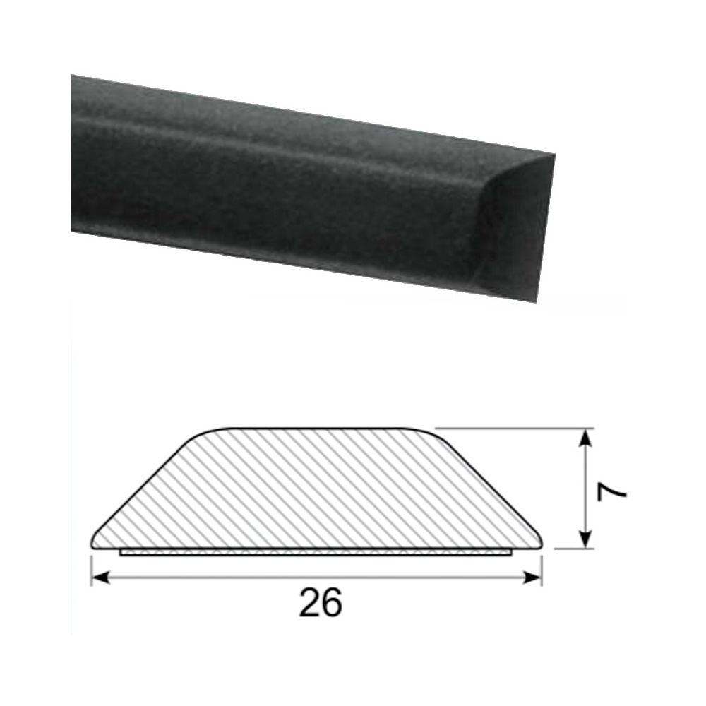 Mounted with 3M self-adhesive tape that is pre-glued on the trim. Made of flexible / elastic material, making it possible to mount around corners and curves. Black 26 mm wide and 7 mm high decorative trim. During installation, it is important that the temperature is between +15°C and +25°C.