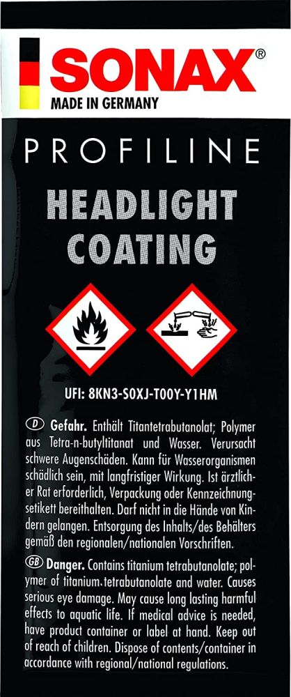 Sonax Headlight Coating is a ceramic long-term sealing for plastic headlights, which have been treated with Sonax Profiline Headlight Polish. Sonax headlight protection provides a protective coating and prevents leaching due to environmental influences.